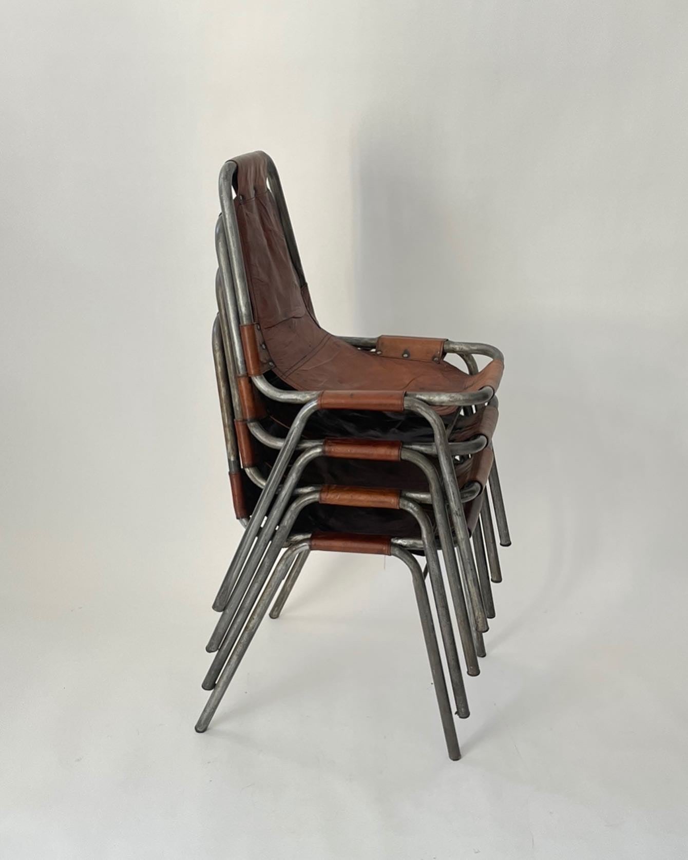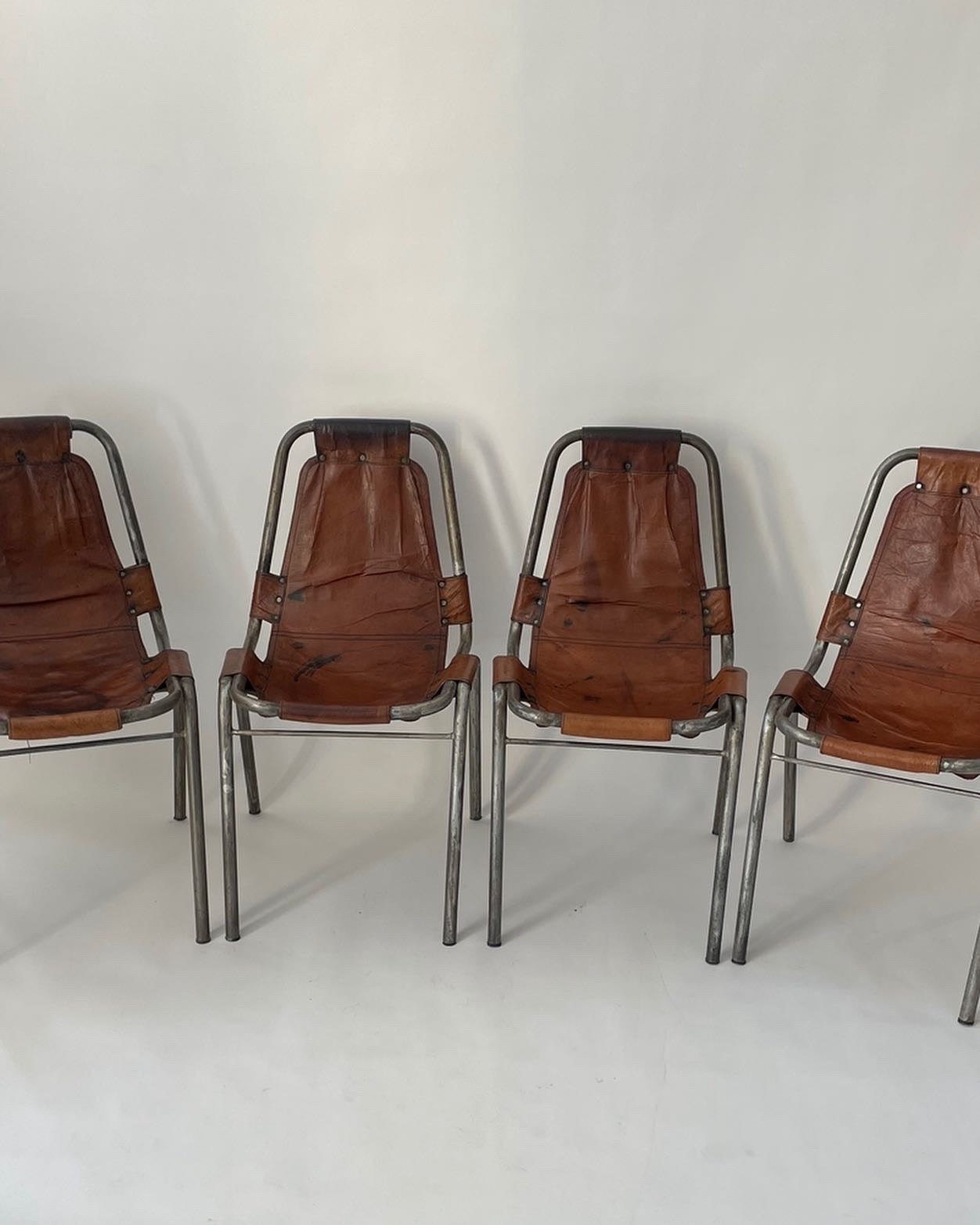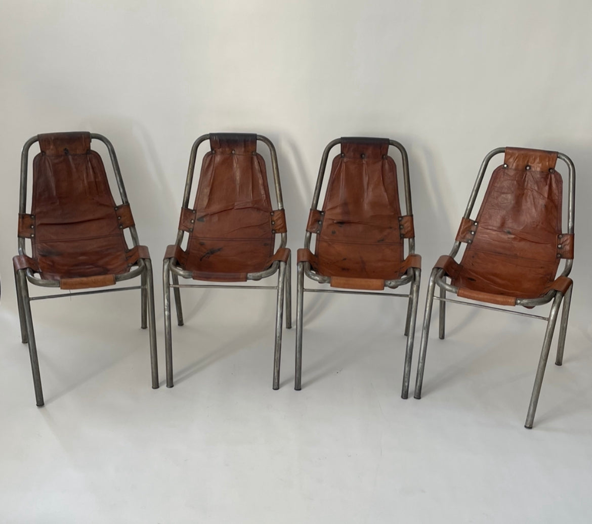 4 ‘Les Arcs’ Leather & Aluminium Chairs - Charlotte Perriand 1960s