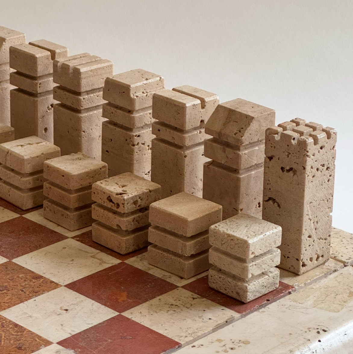 Travertine Chess Set by Angelo Mangiarotti - Italy 60s